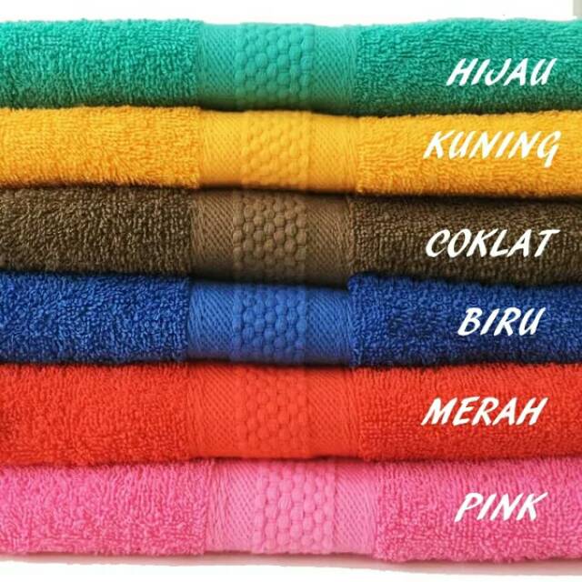 Bahan 100% cotton towelMerek : MutiaUkuran : 70 x 140 cmReady Warna : Pink, Kuning, Toska, Biru, Cokelat, MerahPada saat membeli, sebutkan warna yang Anda inginkan pada kolom catatan (bisa 1 warna / campur warna). Jika tidak ada keterangan apapun, akan dikirim warna RANDOM.Terima