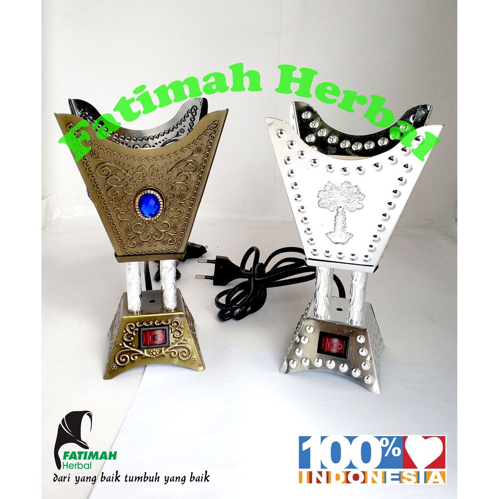 Mabkhara atau tempat bakaran dupa- Bahan terbuat dari Seng- Menggunakan Listrik- Bentuknya indah dan Elegan- Ukuran : 10,5 * 10 * 11