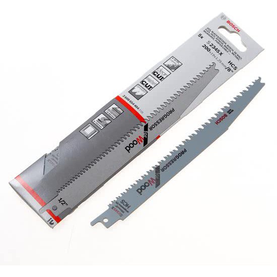 Sabre Saw Blades for Wood S 2345 X, Progressor for Wood (5 pcs)2 608 654 404SpesifikasiAreas of applicationConstruction wood [mm]150 Boards [mm]6-60Wooden wall cutout [mm]150 Plastic [mm]150 DetailsMaterialHCSTooth designside set, groundTooth spacing [mm] / TPI2.5-4.3 / 6-10Areas of applicationConstruction wood ( 150 mm), boards: chipboard, MDF (6-60 mm), plywood, plastic ( 150 mm), wooden wall ( 150 mm)TypeS 2