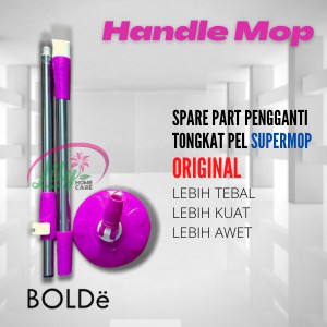 GAGANG / TONGKAT PEL / HANDLE SET ORIGINAL SUPERMOP BOLDEHANDLE SET / TONGKAT PEL SUPERMOP BOLDE 100% ORIGINAL AWET HINGGA BERTAHUN-TAHUN !!!TONGKAT TERBUAT DARI BAHAN BERKUALITAS, STAINLESS STEEL TAHAN KARATHEAD MOP DENGAN MATERIAL PLASTIK TERBAIK, ANTI PECAH..LANGKAH - LANGKAH PEMASANGAN :1. SAMBUNGKAN 2 BAGIAN TONGKAT, MASUKKAN TONJOLAN DRAT KE LOBANG PASANGAN DRATPUTAR HINGGA KENCANG2. KENDORKAN DRAT HEAD MOP (TIDAK SAMPAI TERLEPAS)3. MASUKKAN TONGKAT KE LOBANG HEAD MOP, DORONG DAN PUTAR4. KENCANGKAN KEMBALI DRAT HEADMOP5. TEGAK LURUSKAN TONGKAT DAN HEADMOP6. PASANGKAN KAIN SUPERMOP7. SUPERMOP SIAP DIGUNAKAN===============================================1 PAKET TERDIRI DARI:1 SET HANDLE + HEA