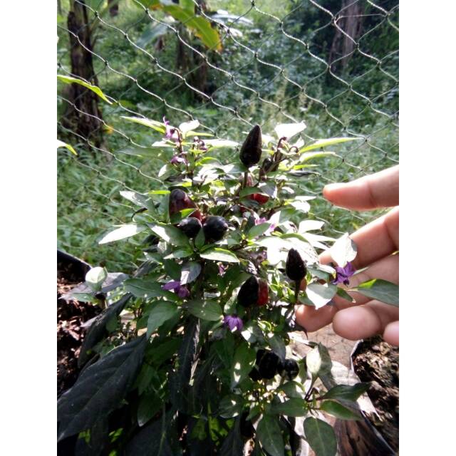 Cabe ini identik dg warnanya yg hitam pekat,buah yg menjulang ketas dan bunga berwarna ungu menarik,sangat cocok untuk anda tanam di halaman rumah anda,,, karna jenis cabe yg satu ini mudah untuk tumbuh di dataran rendah atau t