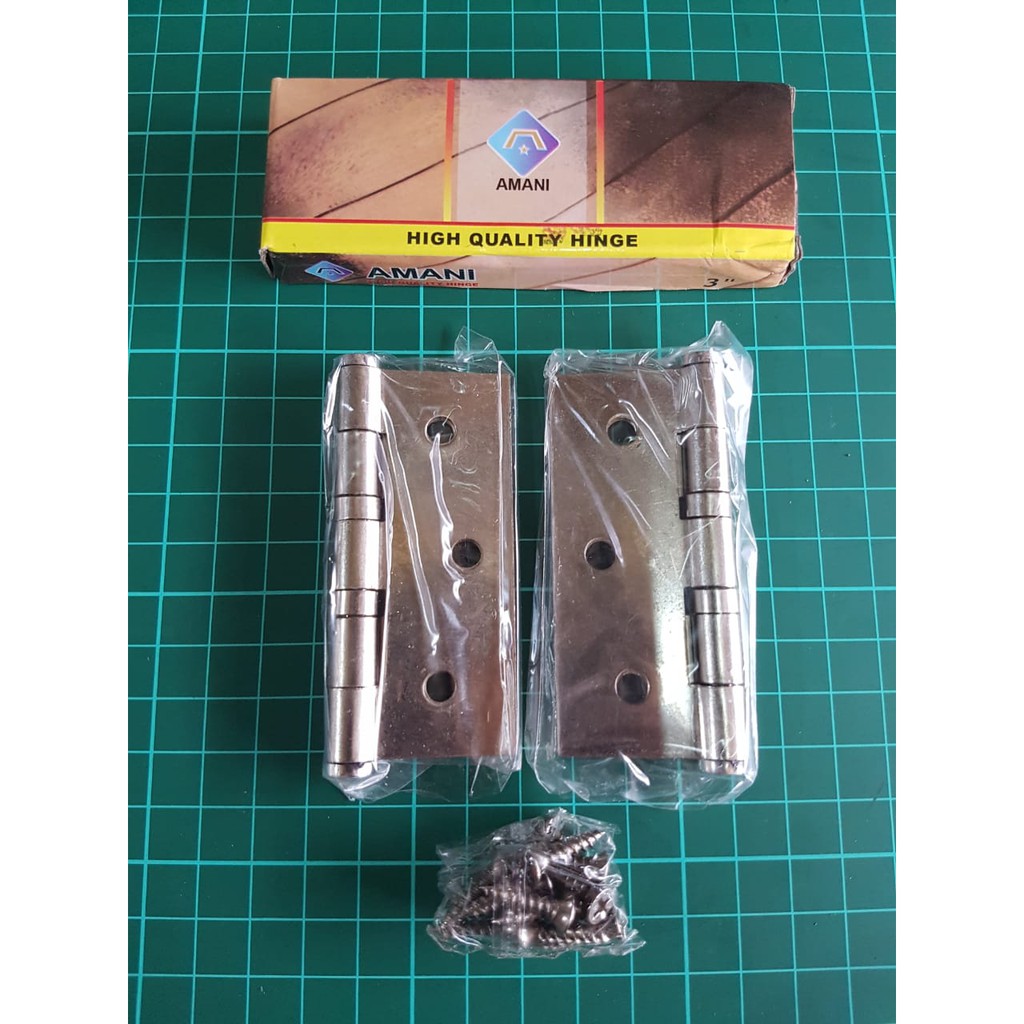 Engsel Kupu-Kupu Ukuran 3 Inch Merk AmaniPanjang engsel : 3 inchLebar engsel 2 sisi : 6,2 cmWarna : s