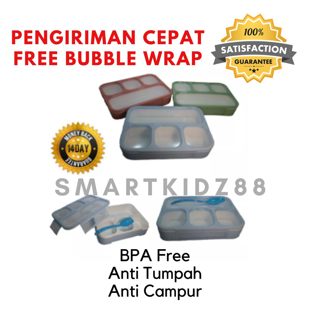 GARANSI 14 HARI UANG KEMBALI APABILA BARANG YG DIKIRIM TIDAK SESUAI DENGAN PESANAN, RUSAK, TIDAK BERFUNGSI SEMPURNA, ATAU KUALITAS TIDAK SESUAI DENGAN YANG DI FOTOMakanan Sehat dan Bergizi sangat berpengaruh terhadap pertumbuhan kecerdasan anak kita.Membawa bekal yg dipersiapkan dari rumah jauh lebih sehat dan higienis daripada jajanan diluarBPA FREE .... AMAN UNTUK MAKANAN DAN TIDAK BERBAUBAHAN PLASTIK TEBAL DAN ANTI TUMPAHMicrowave safe - aman untuk microwave / tutupnya di buka yaDishwasher safe - aman untuk mesin cuci piringTahan air panas sampai 120 derajat celcius, aman untuk makanan berkuahTerdapat 4 sekat dan dilengkapi dengan sendokDimensi 23 cm ( P ) x 17 cm ( L ) x 4,6 cm ( T ) /540 mlTerdapat sekat karet antar ruang sehingga makanan tidak tumpah atau tercampurBarang Ready stock-Pengiriman melalui JNE / J&T dibungkus dengan karton dan buble plastic wrap untuk menjaga kualitas barang belanjaan anda-Order dikirim hari yang sama sebelum tutup toko (18:00) setiap hari