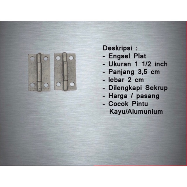 Perhatian : 1. Berat Disesuaikan Dengan Pengiriman Yang Dihitung Bedasarkan Volume2. Pengiriman Dengan Gojek Dapat Disesuaikan Beratnya Harap Chat Message3. Setiap Kelebihan Dalam Ongkos Kirim Nantinya Akan Kami Refund ke Pihak PembeliDeskripsi : - Engsel plat jendela dan pintu - Berat 20 Gram- Ukuran 1.5”(3.5cm x 2cm)- Warna silver- Mudah digunakan- Praktis pemakaiannya- Bonus Sekrup plus di dalamnyaMohon ditanya terlebih dahulu untuk ketersediaan produk.=======================================Engsel Kupu-kupu plat adalah engsel pintu, jendela no 1 dan terlaris di Indonesia. Produk ini digunakan untuk menopang, menyangga dan menyambung pintu rumah, jendela rumah, dan pintu kandang atau lainnya yang biasanya berbahan dasar kayu yang agak berat. Pemakaiannya praktis dan sangat mudah diatur dan digunakan. Berbahan Stanlees yang sangat kuat dan awet dan tidak mudah rusak. Dapat diganti dan ditukar dengan mudah. Dibungkus dengan rapih. Pemasangan hanya menggunakan obeng dan pahat kayu.#tokobangunan #jualbahanbangunan #tokomaterial #tokobangunandepok #jualengselkupukupu #jualmurah #jualmurahbanget #tbsuryajaya #tokobangunanonline #jualengselkoboi #jualengselsendok #jualengselsiyota #jualengselpiano #jualengselpatron #jualengselkamarmandi #jualengselpintu #jualengselhpp #jualengse