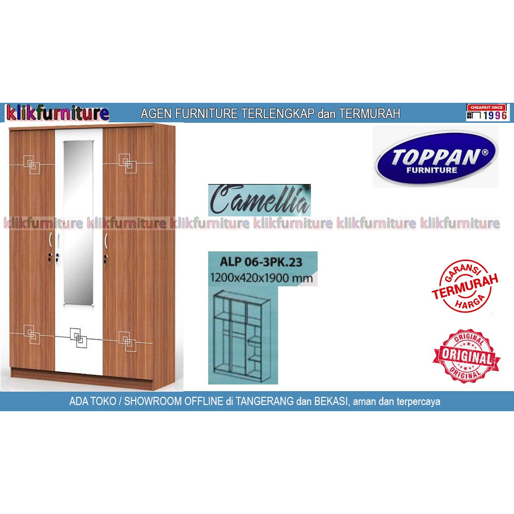 KHUSUS JADETABEK SAJA, DILUAR ITU HUBUNGI KAMI. Pemesanan Pilih Kurir Tersedia Buat Resi Surat Saja, Barang dikirim dirakit kurir toko (ongkos bayar ditempat)Informasi kontak dan toko/showroom offline bisa dilihat di detail akun kami di Shopee https://shopee.co.id/klikfurniture atau Via CHATLemari Pakaian 3 Pintu Cermin Camellia Toppan ALP 06-3PK.23Seri terbaru Asda by Toppan FurnitureUkuran : 120 x 42 x190 cmBahan Kayu Particle BoardTersedia Lemari 2 Pintu untuk tipe ini disini :https://shopee.co.id/product/21599820/1569888382/Mohon dibaca :- bahan kayu particle board kualitas terbaik dari Toppan Furniture- ongkir+instalasi Rp 100.000,-(bayar ditempat, nego tergantung lokasi) / pengiriman(kalau beli beberapa item tetap dihitung 100.000)- KHUSUS wilayah Jakarta, Depok, Tangerang, Bekasi- MOHON UNTUK TANYA STOK TERLEBIH DAHULU, karena sewaktu-waktu bisa terjual di toko-toko offline kamiKatalog lengkap untuk produk Lemari Pakaian 3 Pintu bisa dilihat disini :https://shopee.co.id/klikfurniture?page=0&shopCollection=10420356#lemaripakaian #lemaribaju #lemariminimalis #lemaricermin#lemaritoppan #furnituretoppan #belilemari #juallemari#lemarimurah #promolemari #lemaripakaianminimalis------ klikfurniture : agen resmi produk furniture termurah sejak 1996 ------Diskusi dan Chat akan direply Senin-Sabtu Jam 08.00 - 17.30 (selain tanggal merah).Terima